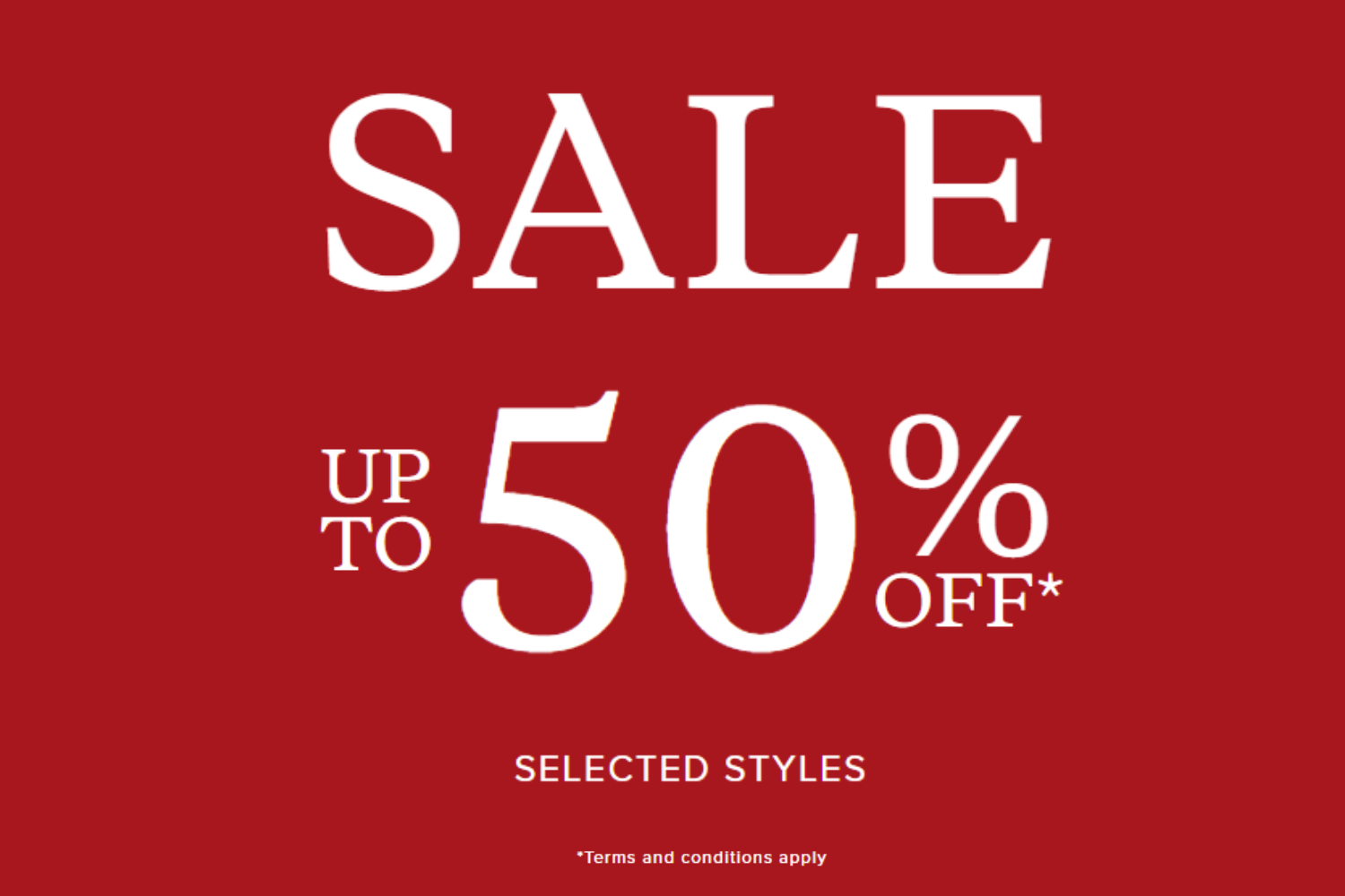 SALE up to 50% off* selected styles t&c's apply.
