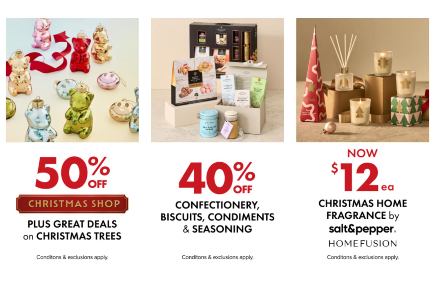 50% off Christmas Shop, 40% off confectionery, biscuits, condiments & seasoning plus much more!